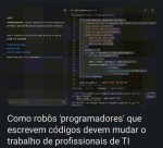 - Como robôs ‘programadores’ que escrevem códigos devem mudar o trabalho de profissionais de TIAlém de escrever textos, o robô ChatGPT consegue “programar” em várias linguagens. Isso também pode ser feito com o Copilot, do site de compartilhamento de códigos GitHub. As ferramentas podemContinuar lendo “Como robôs ‘programadores’ que escrevem códigos devem mudar o trabalho de profissionais de TI”